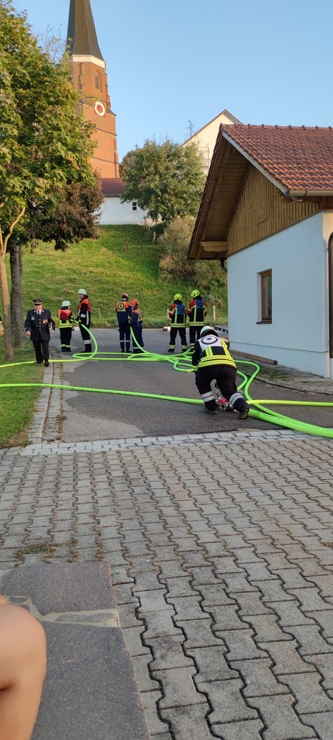 Auch dieses Jahr bereiteten unsere beiden Kommandanten Stefan Holfelder und Andreas Ries wieder eine Gruppe junger aktiver Feuerwehrleute auf das Leistungsabzeichen vor. Einen gesamten Tag lang erlernten die Teilnehmer alle Kenntnisse und Fertigkeiten, die sie für eine erfolgreiche Prüfung benötigen. Geübt wurde der schnelle und saubere Aufbau einer Leitung wie er bei einem Löscheinsatz benötigt wird. Abgesehen von Gruppenführer und Maschinist sowie den beiden Neulingen, die die Stufe 1 ablegten, musste jeder Teilnehmer alle Positionen beherrschen. Schließlich stellten sich die gut ausgebildeten aber doch sichtlich angespannten Feuerwehrfrauen und -männer der Leistungsprüfung.