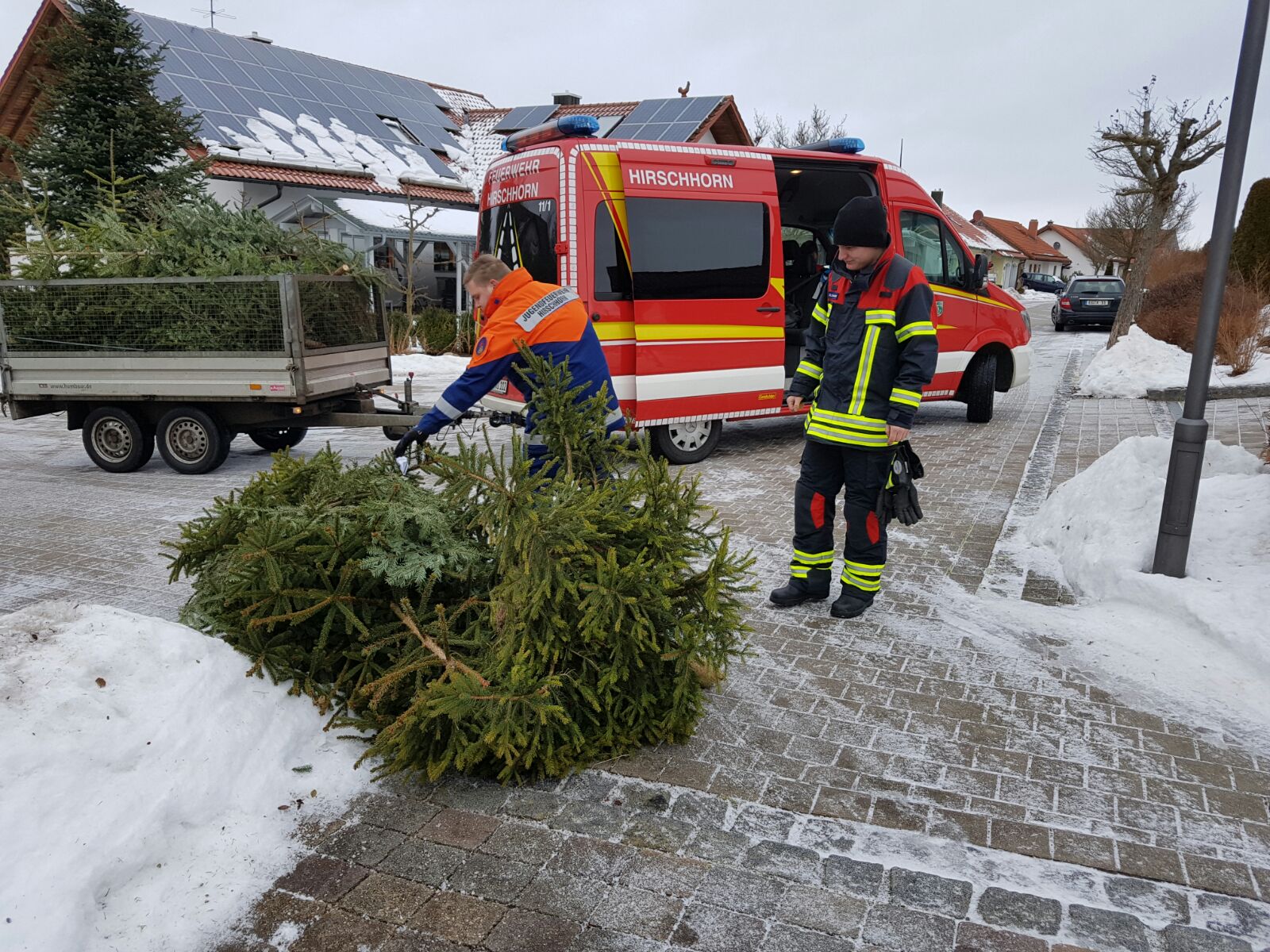Bereits Wochen zuvor wurde auf diese für die Christbaumbesitzer kostenlose Aktion hingewiesen. Dieses Angebot der jungen Feuerwehrleute wurde von den Bürgern durchwegs sehr positiv angenommen. Natürlich freute sich die Jugendfeuerwehr Hirschhorn auch über die eine oder andere kleine Spende, die die Anwohner an den Bäumen befestigt hatten.