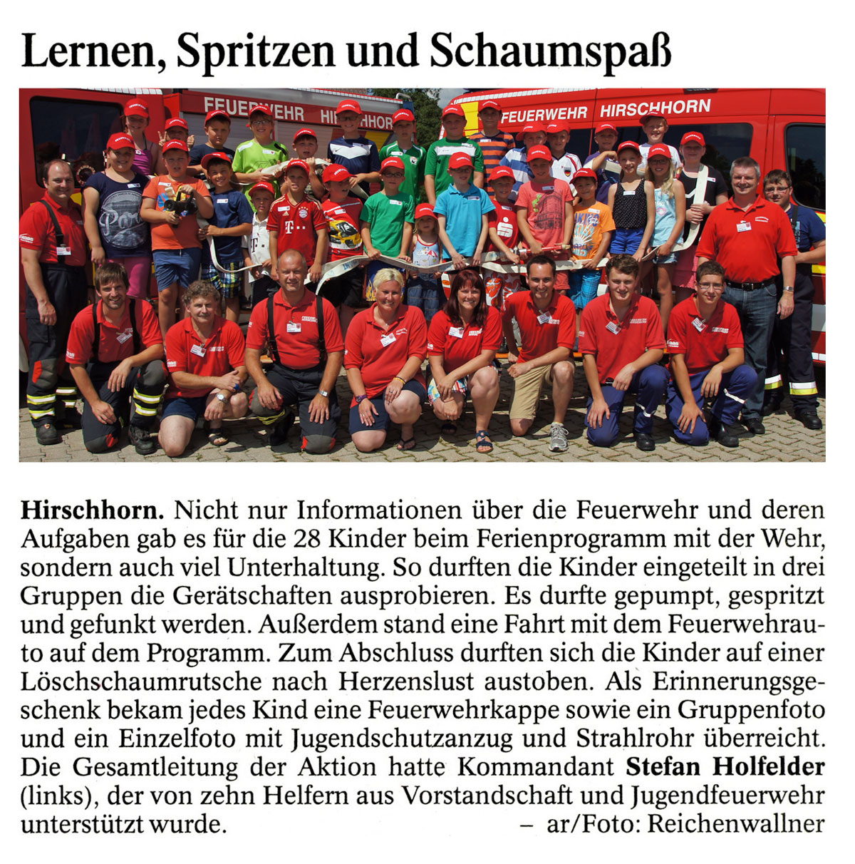 Die Feuerwehr Hirschhorn lud ein zum Ferienprogramm 2014