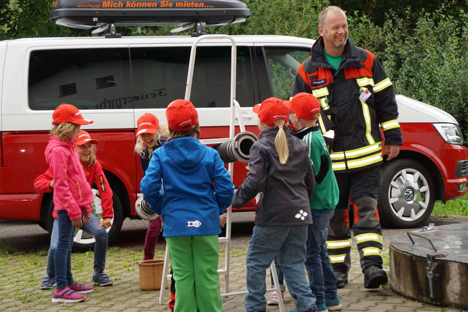 Alle Kinder erhielten kostenlos Getränke, eine kleine Brotzeit, eine Feuerwehr-Schirmmütze sowie ein Einzelfoto und ein Gruppenfoto. Kinder wie Eltern freuten sich über das interessante Ferienprogramm und haben bereits angekündigt, auch nächstes Jahr wieder dabei zu sein.