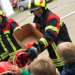 Die kleinen Feuerwehrmänner durften sich dann an verschiedenen Stationen die Uniformen, persönliche Schutzausrüstungen, Atemschutzgeräte, Pumpen, Schläuche und vieles mehr zeigen lassen. Auch die Fahrzeuge derren Funktionen und Bezeichnungen wurden ausführlich erklärt.