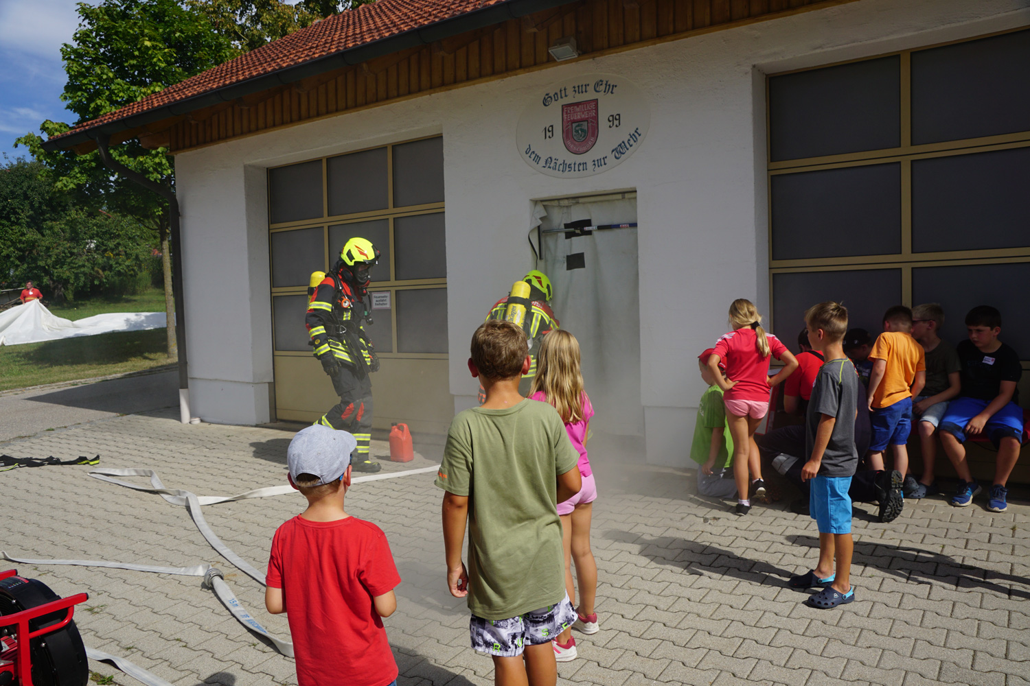 Natürlich war auch für Getränke und Wurstsemmeln gesorgt. Zum Schluss erhielt jedes Kind noch ein Foto von sich selbst beim Löschen sowie ein Gruppenfoto als Geschenk mit nach Hause. So ging ein wunderbarer Nachmittag sehr schnell vorbei, an dem sowohl die Kinder wie auch die Betreuer viel Spaß hatten.