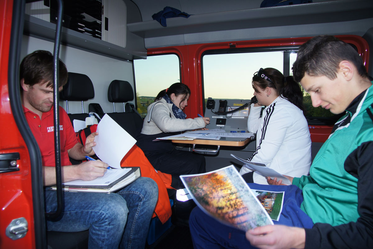 Die diesjährige Funkübung in Hirschhorn wurde als 2m-Band Übung abgehalten. Funkwart Andreas Ries wollte bei dieser Übung überprüfen, wie weit die 2m-Band Funkgeräte reichen, wenn die Einsatzleitung einen guten Standort hat. Dazu platzierten wir unser Mehrzweckfahrzeug am Kirchenparkplatz und stellten in Hirschhorn und Umgebung Tafeln mit Fotos möglicher Einsatzszenarien auf.