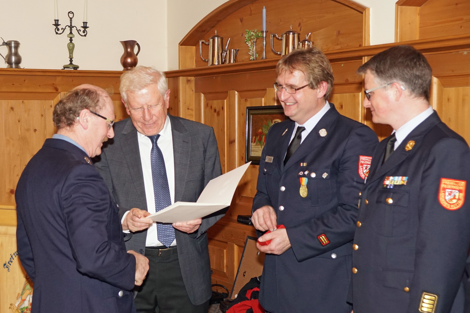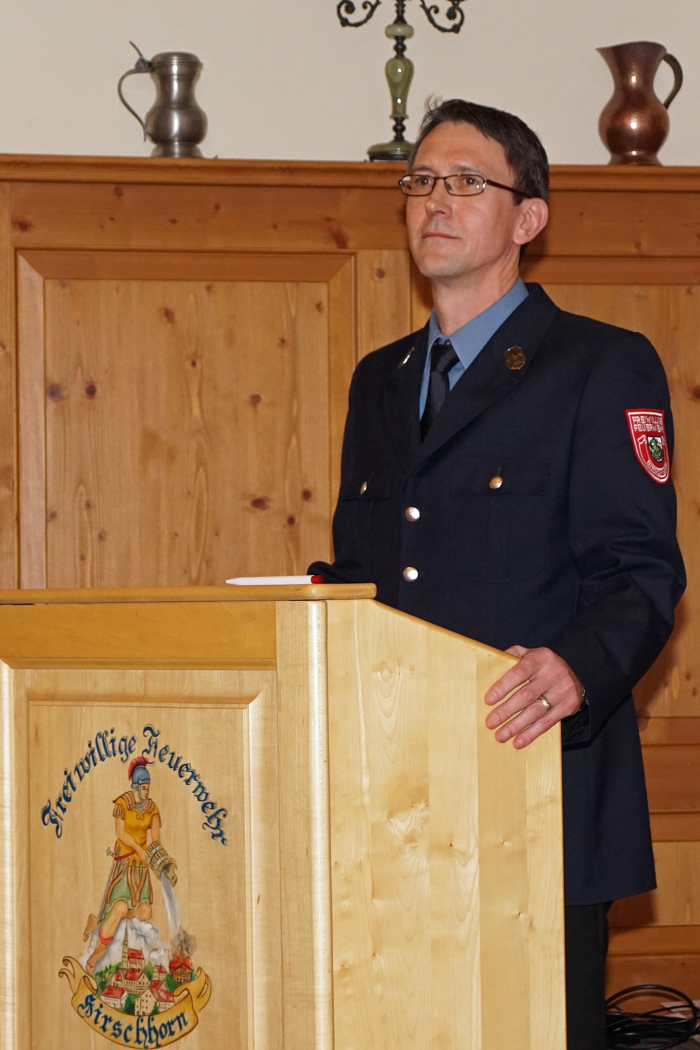 Ausführlich erläuterte Thomas Grötziger wie sehr ihn der gute Zusammenhalt innerhalb unserer Feuerwehr freute.