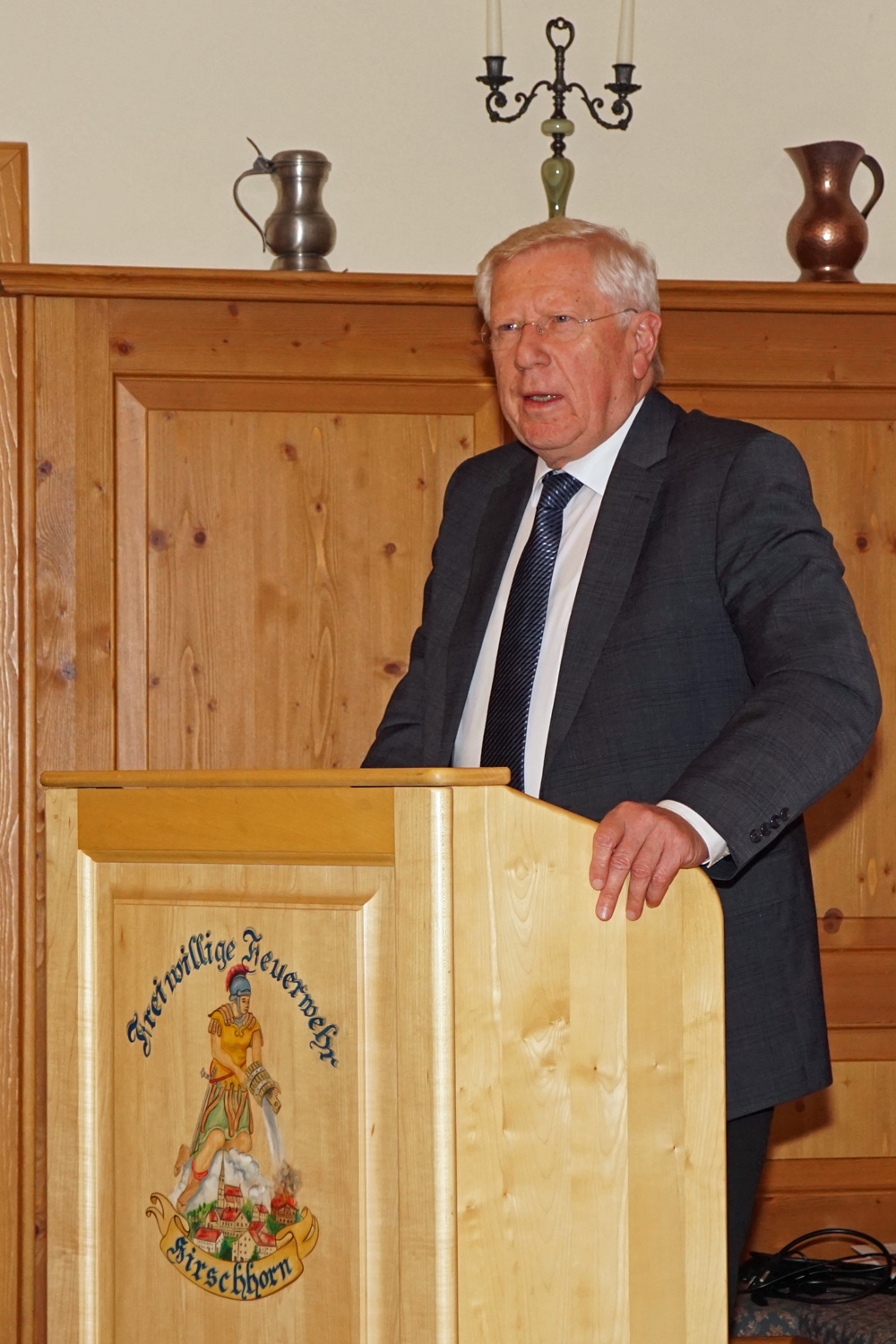 In einer kurzen Rede bedankte sich Hans Ries bei der Vorstandschaft und bei allen Mitgliedern der Feuerwehr für diesen Ehrentitel. Er betonte, dass auch ihm nicht alles glückte, was er anpackte, dass er aber immer sehr gern 1. Vorsitzender der Feuerwehr Hirschhorn war.