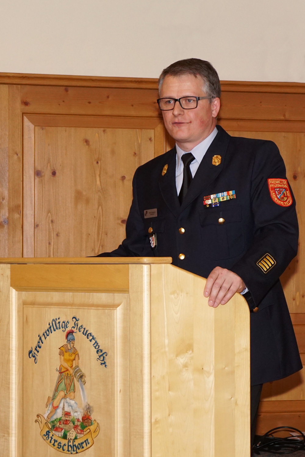 In seinem Grußwort dankte Bürgermeister Georg Thurmeier der Feuerwehr Hirschhorn für ihre Einsatzbereitschaft, für die Ausbildungsmaßnahmen, aber auch für die rege Teilnahme an kirchlichen und weltlichen Festen. Er berichtete von der geplanten Anschaffung der Verwaltungssoftware für Feuerwehren MP-FEUER. Hierzu wird es demnächst Schulungen für die Anwender geben.