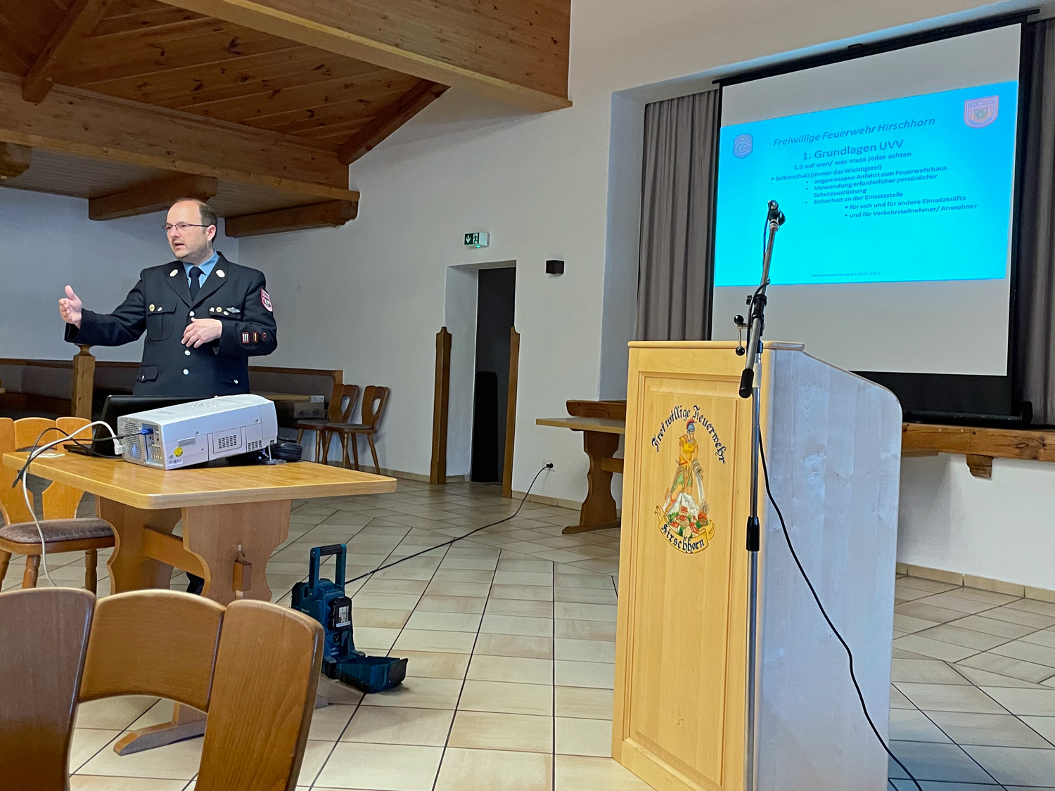Bereits vor der Generalversammlung trafen sich die Aktiven zur alljährlichen Dienstversammlung, welche unser 1. Kommandant Stefan Holfelder abhielt. Neben der UVV-Unterweisung informierte er auch noch über alle wichtigen Neuerungen aus dem aktiven Bereich.