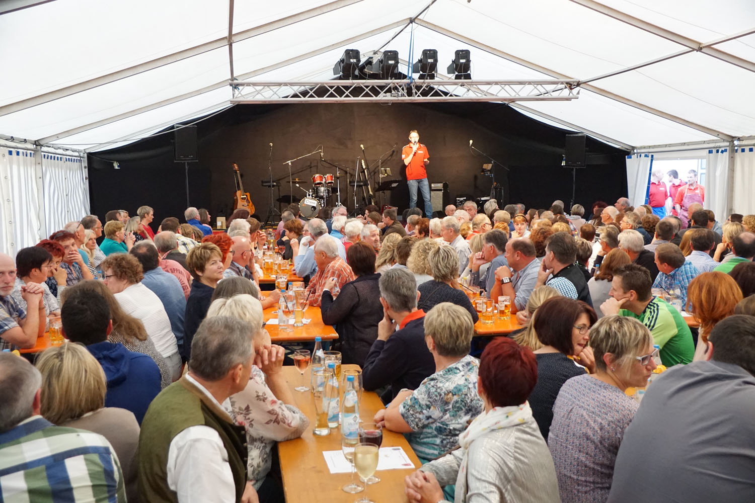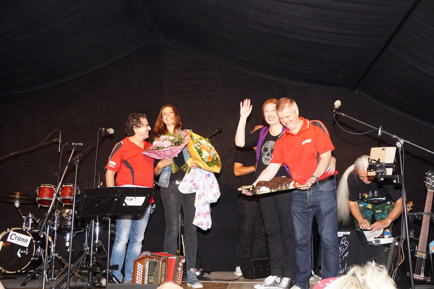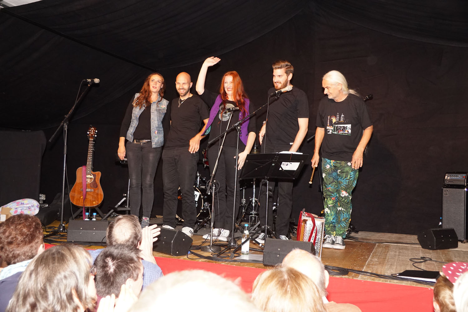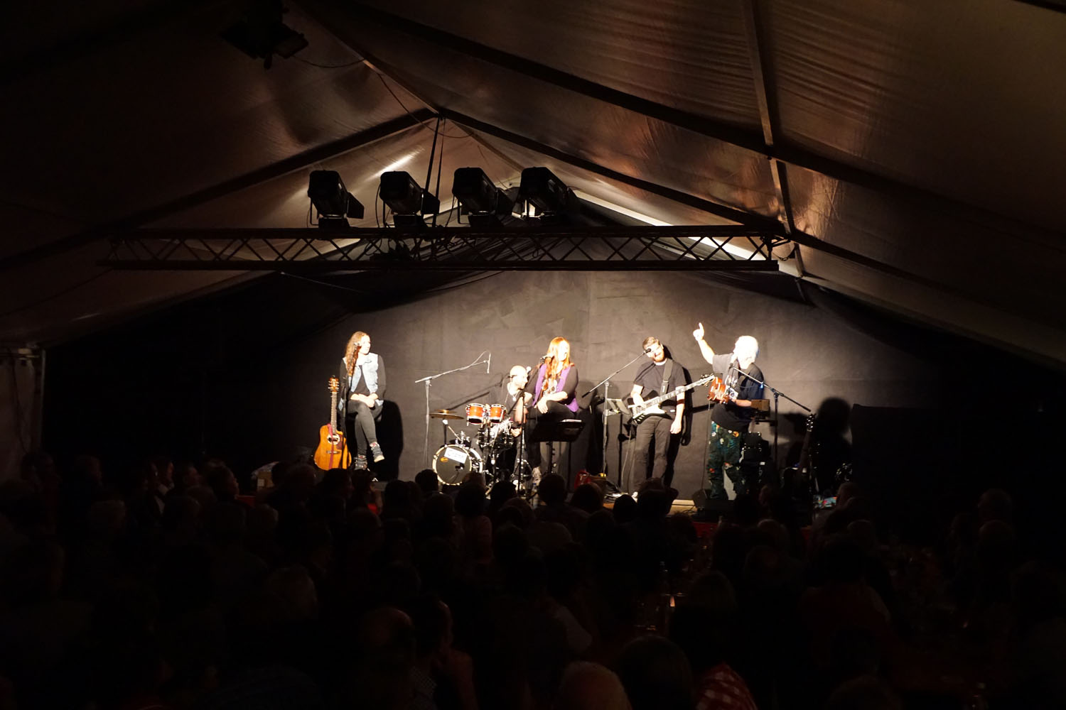 Mit Liedern wie „Ausschloffa“, „Blattl im Wind“ oder dem „Männermutmachsong“ konnten sich die Zuhörer bestens identifizieren. Und beim Solo von Andy Blaimer – der „Virusinfektion“ sang dann auch das ganze Zelt mit. Leise Songs wie „Woama Reng“ wechselten sich mit schwungvollen Hits wie „Mei bist du a Scheena“ oder „Weiher – heia“ ab. Nicht fehlen durften natürlich ihre bekannten Lieder „I mog’s bunt“ und „Zu zwoat samma a Weltmacht“. Am meisten Applaus ernteten die Künstler aber für ihre gefühlvollen Balladen, bei denen die ausgezeichneten Stimmen von Susi und Tanja voll zur Geltung kamen.