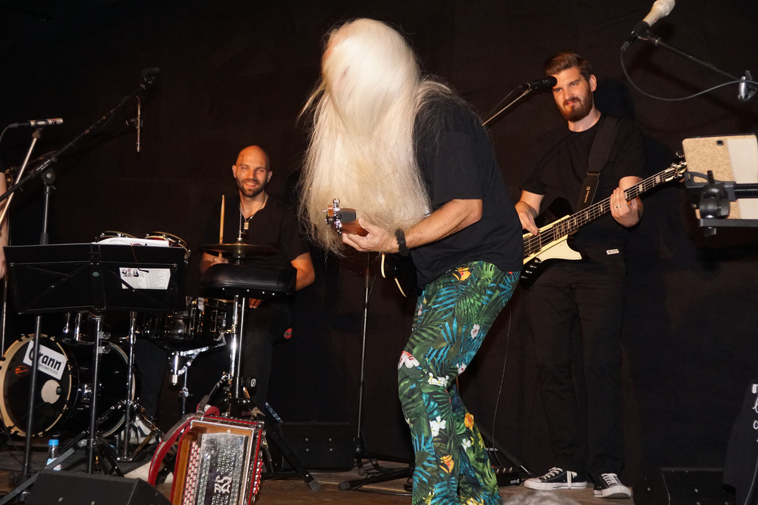 Im Jahr 2013 waren D’Raith-Schwestern und da Blaimer mit ihrem damaligen Programm „Schwer vermittelbar“ zum ersten Mal bei uns zu Gast. Da sie damals voll und ganz überzeugten, freuten wir uns sehr, dass wir sie heuer mit ihrem brandneuen Programm „Hart aber Herzlich“ erneut engagieren konnten. Verglichen mit ihrem Auftritt 2013 hat sich die Gruppe stilistisch etwas verändert. Neben Susi und Tanja, die mit ihrem gesanglichen Können nach wie vor die Gäste begeisterten ist und bleibt Andy Blaimer der Spaßvogel der Truppe. Neu hinzugekommen sind Schlagzeuger Max Seelos und Gitarrist Phillip Zimmermann, die der Band noch mehr Power geben.