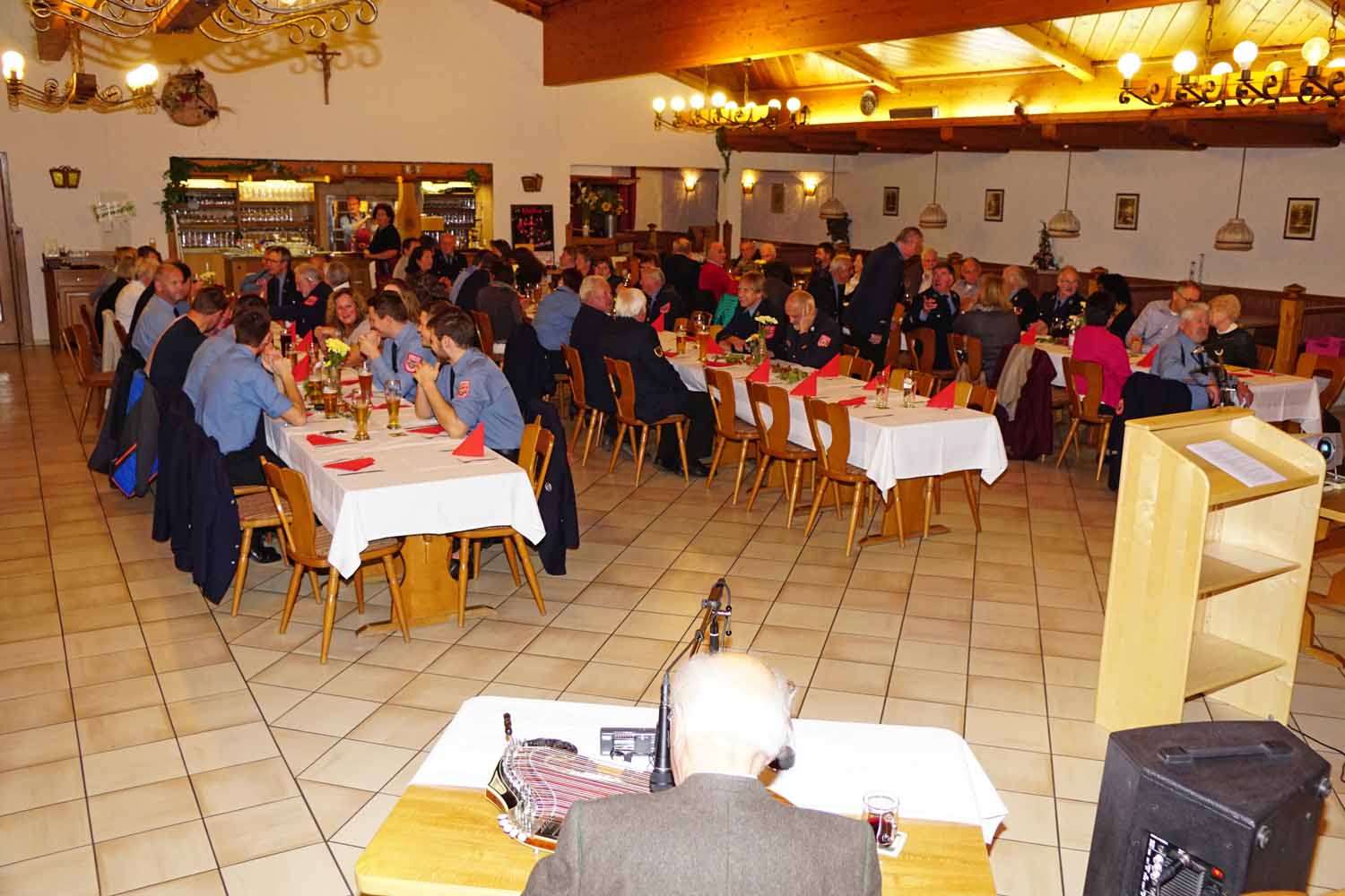 Nach dem Ende des offiziellen Teils lud die Feuerwehr alle Anwesenden noch zu Kaffee und Kuchen ein. Vorstand Thomas Grötzinger bedankte sich bei den Damen, die die Kuchen für die Feuerwehr gebacken und gespendet hatten. Zum Abschluss spielte dann Adolf Stegmeier noch einige Stücke auf seiner Zither und die Besucher konnten den entspannten Abend in netter Gesellschaft noch gemütlich ausklingen lassen.