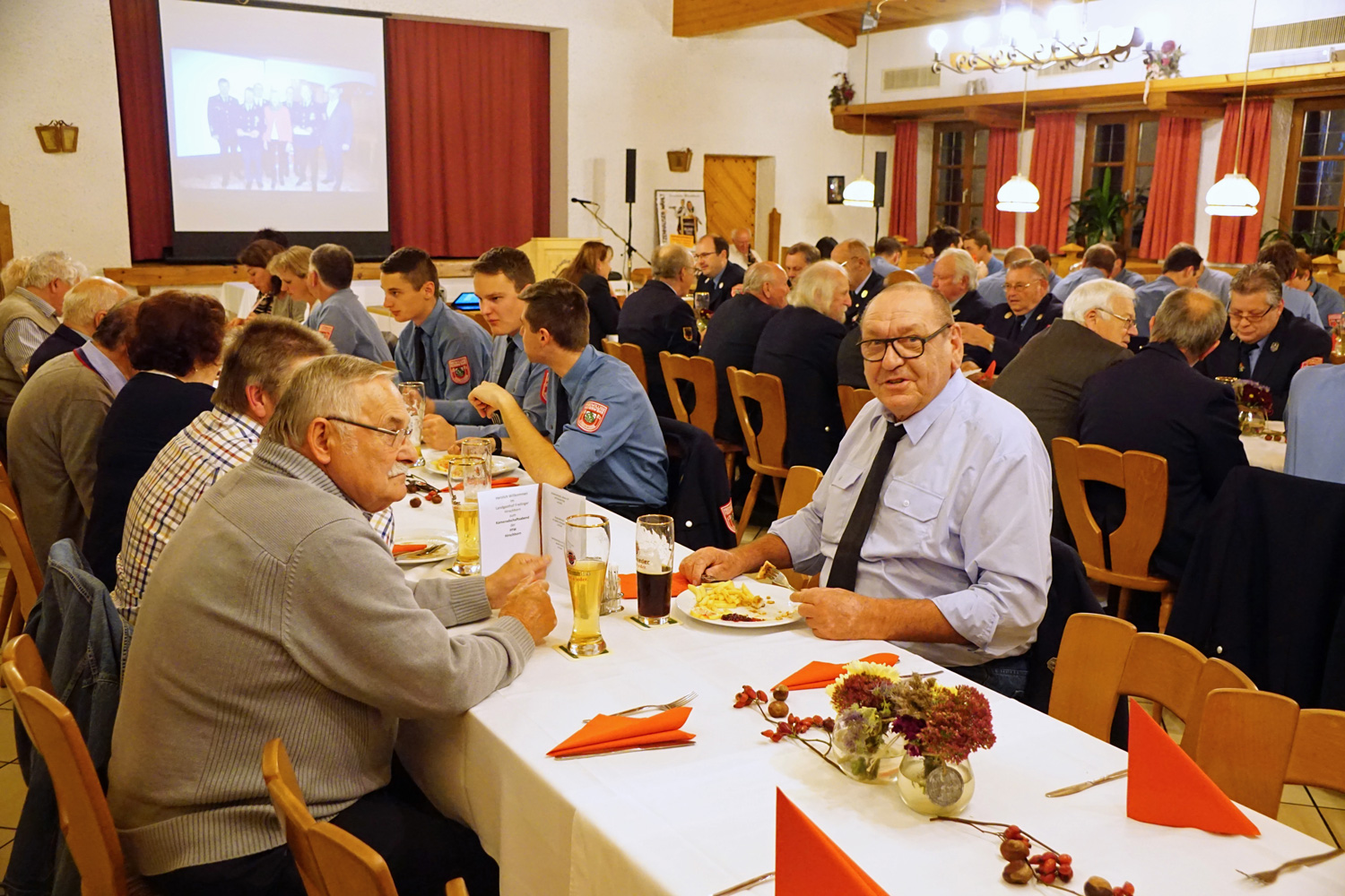 Wie jedes Jahr, so lud die Feuerwehr Hirschhorn auch heuer wieder alle Mitglieder mit Partner/Partnerin zum Kameradschaftsabend ins Vereinslokal Freilinger ein. Nach dem gemeinsamen Abendessen begrüßte 1. Vorstand Thomas Grötzinger alle Gäste und deren Partner(innen) ganz herzlich. Besonders freute es ihn, dass so viele der Einladung folgten und auch eine ganze Reihe Ehrengäste anwesend waren. Sein besonderer Gruß galt Pfarrer Joseph Oliparambil, Pater Viswasam, stv. Bürgermeisterin Renate Mooser, Altbürgermeister Ludwig Watzinger, KBI Hans Schachtner, Ehren-KBR Josef Wimmer, Ehren-KBI Georg Hochholzer, Ehren-KBM Leonhard Huber, Ehrenkommandant Hermann Unterhuber, Ehrenkommandant Ludwig Ettinger, Ehrenvorstand Hans Ries sowie Anton Reichenwallner als Vertreter der Presse. Außerdem dankte er Adolf Stegmaier für die musikalische Umrahmung sowie Manfred Nußbaumer für die Erstellung einer Diashow über das Vereinsleben der letzten 12 Monate.