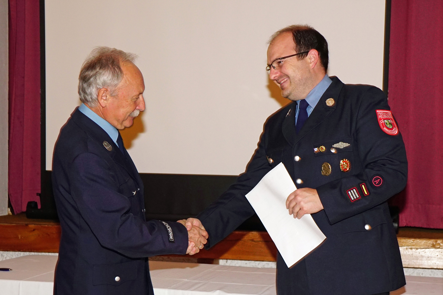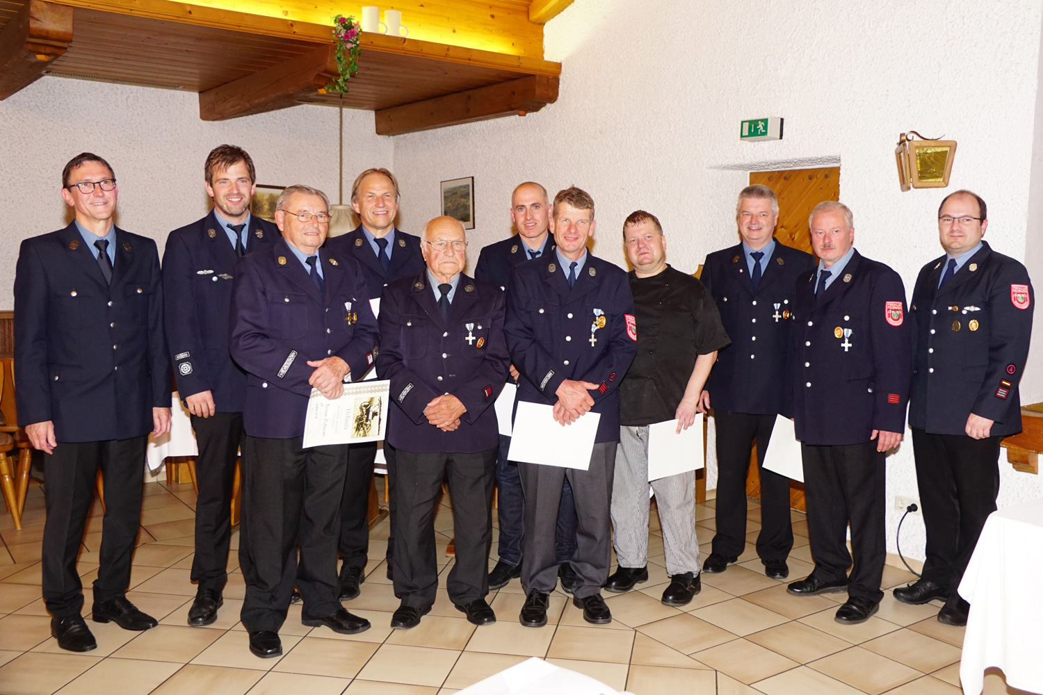 Als nächstes folgten die Ehrungen langjähriger Mitglieder. Geehrt wurden für 10 Jahre aktive Dienstzeit: Michael Maier und Tobias Sextl, für 20 Jahre aktive Dienstzeit Christoph Eppeneder und Matthias Huber, für 20 Jahre aktive und passive Dienstzeit: Anton Berghammer jun., Maximilian Bonauer, Thomas Brandstetter, Thomas Huber und Daniel Rabenberger. Für 30 Jahre fördernde Mitgliedschaft wurde Ludwig Strobl geehrt. Für bereits 40 Jahre aktive und passive Dienstzeit erhielten Josef Heller, Michael Moser und Markus Thannhuber eine Ehrung. Für 40 Jahre aktive Dienstzeit wurden Hermann Unterhuber sowie Ehrenvorstand Hans Ries besonders geehrt. Nachträglich wurde Otto Biedersberger für seine bereits im letzten Jahr erreichten 60 Mitgliedsjahre geehrt. Die langjährigste Ehrung erhielt in diesem Jahr unser ehemaliger 2. Kommandant Andreas Nußbaumer mit 65 Jahren aktiver und passiver Dienstzeit.