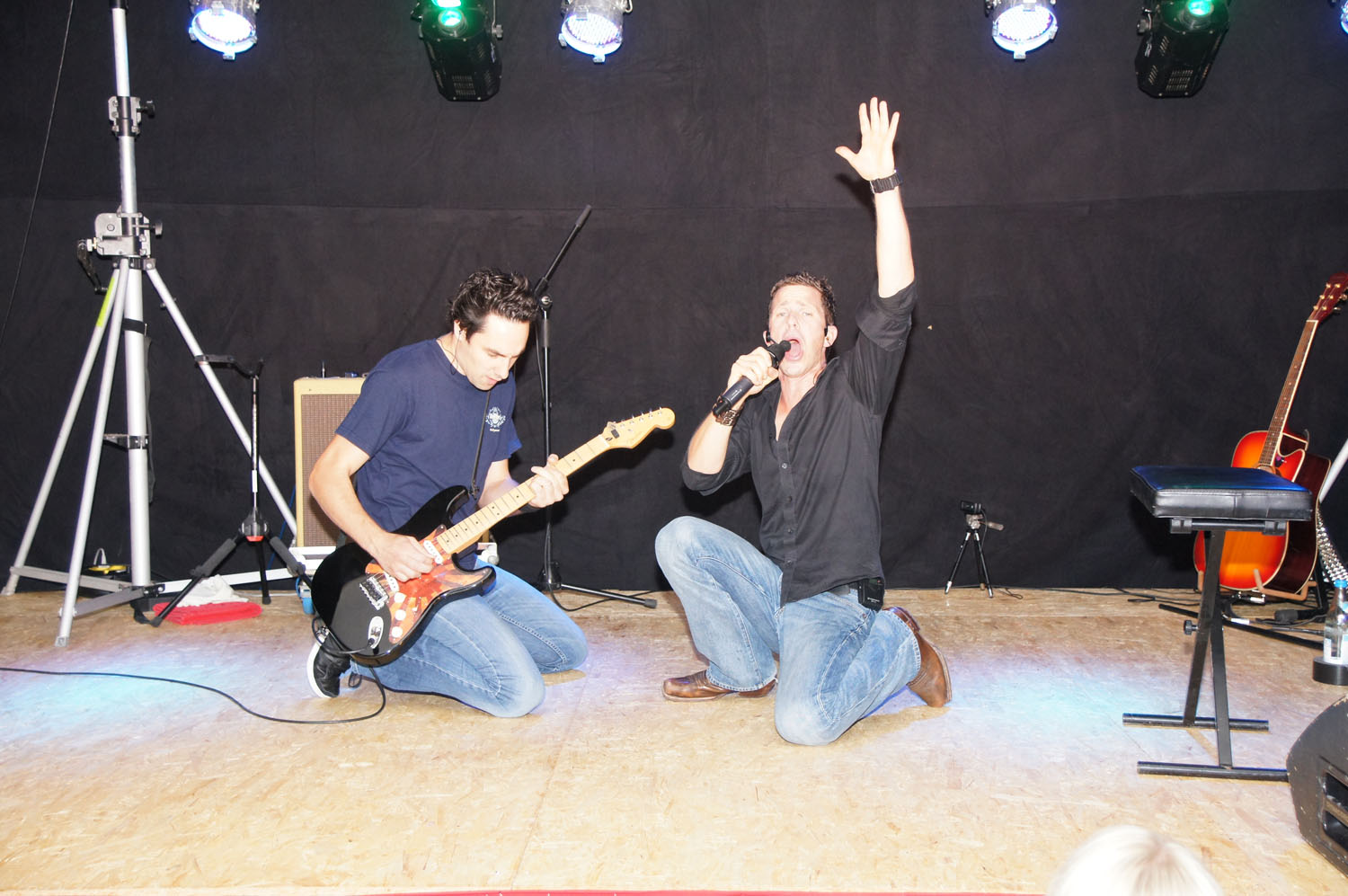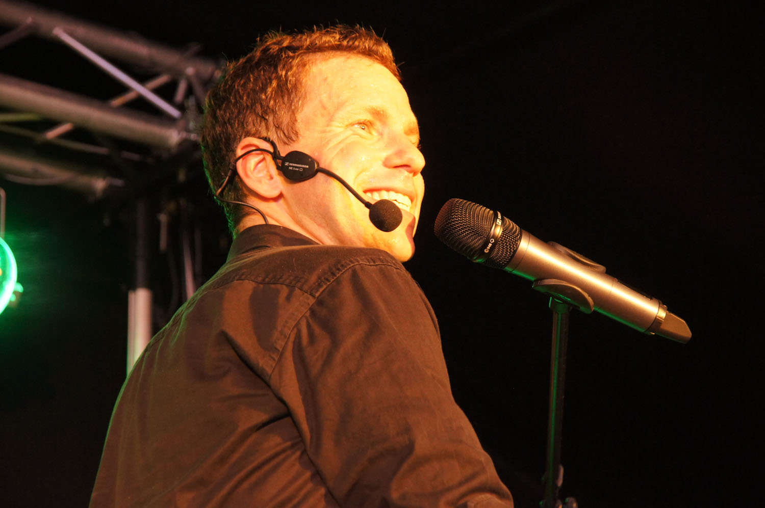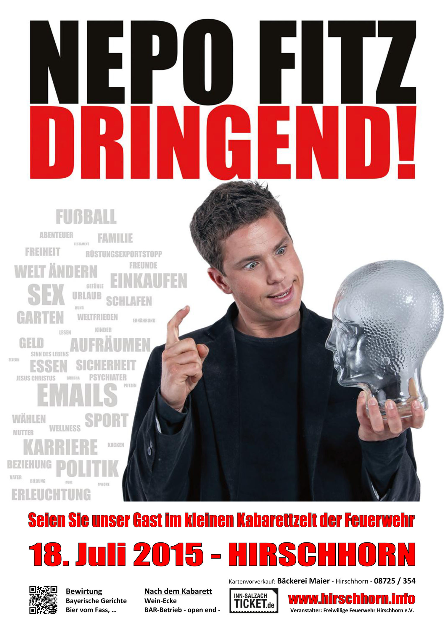 Schnell und vielfältig präsentierte sich Nepo Fitz mit seinem Programm „DRINGEND!“ bei uns in Hirschhorn. Er zeigte sowohl die ganze Bandbreite seines kabarettistischen Könnens, wie auch seine musikalischen Fähigkeiten. Angefangen von lauter Rockmusik bis hin zu leisen Balladen, beeindruckte er sein Publikum immer wieder auf´s Neue. Dabei wurde er mehrmals von seinem Freund Domenico Camiscia auf der E-Gitarre begleitet.