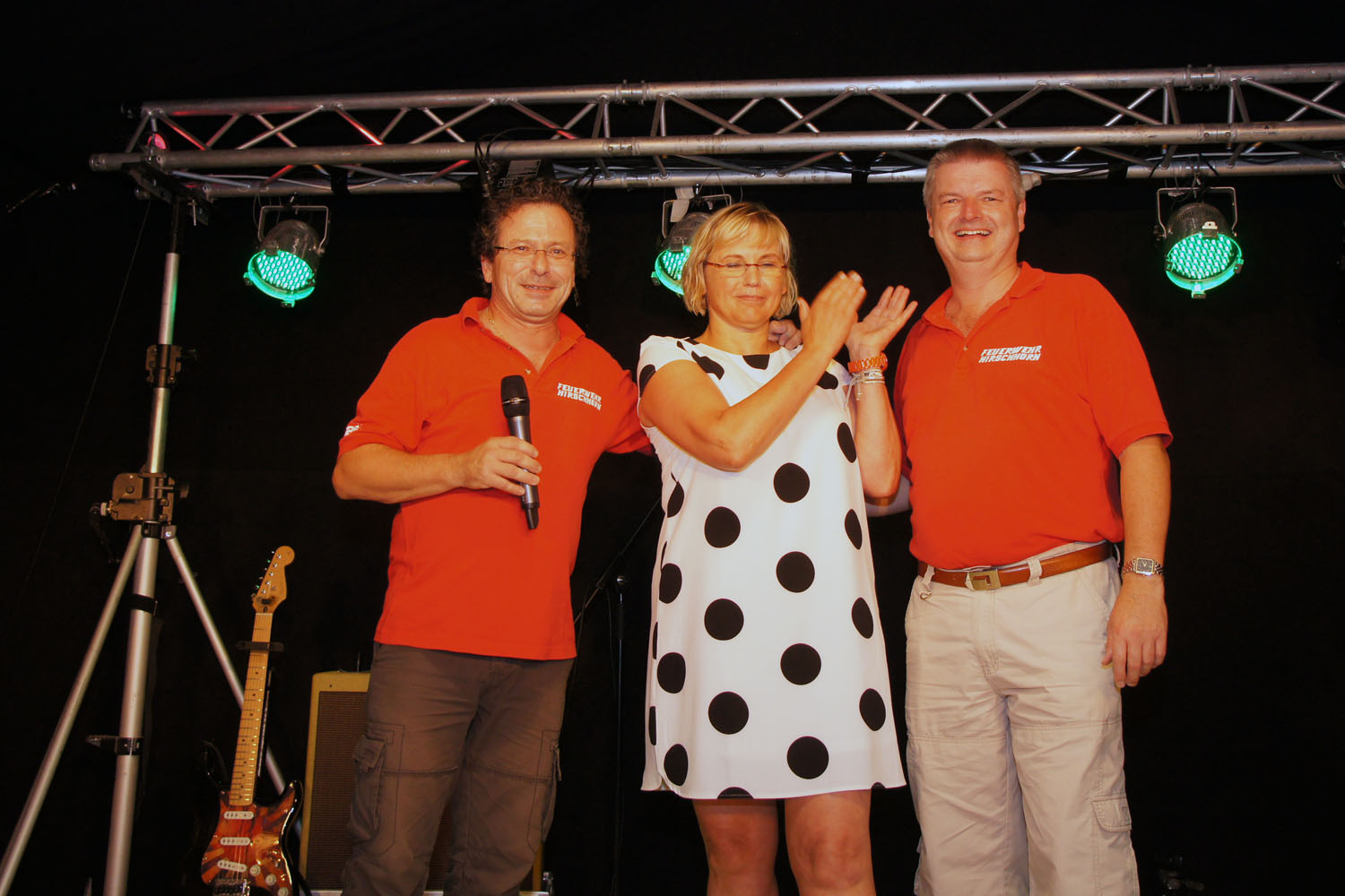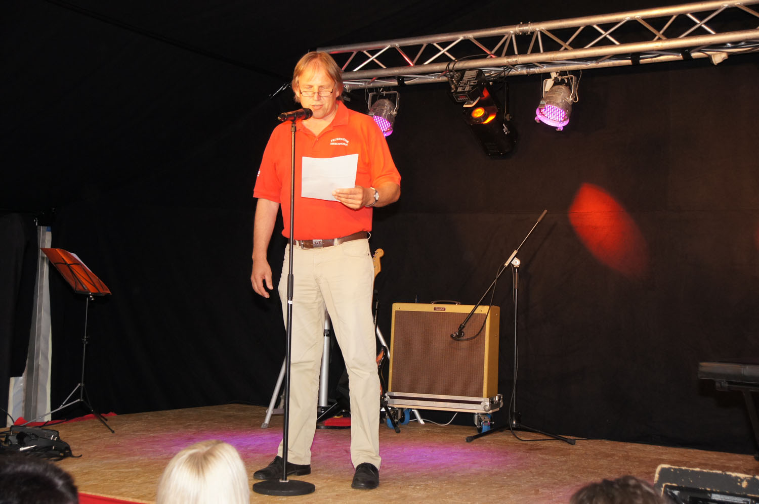 In der Pause fand dann wieder eine Verlosung unter allen anwesenden Gästen statt. Anschließend bat Moderator Christoph Zöllner den Gründer des Kabarettabends der Feuerwehr – Manfred Nußbaumer – auf die Bühne. Er danke ihm für sein großes Engagement und gratulierte zum 10-jährigen Kabarettjubiläum.