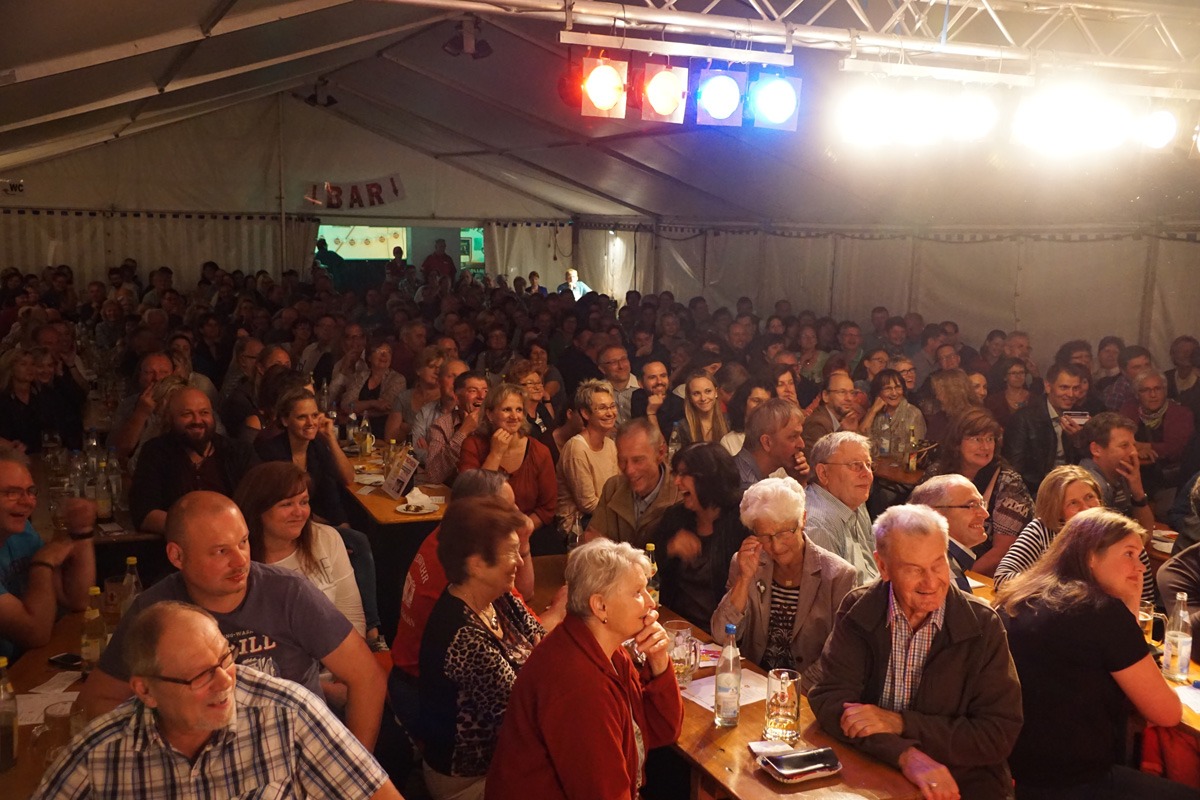 Schon lange vor Veranstaltungsbeginn füllte sich das ausverkaufte Kabarettzelt mit zum Teil weitgereisten Gästen. Gespannt wartete man auf ein Kabarettstück, das es so kein zweites Mal gibt. Autor und Kabarettchef Tom Bauer schaffte es, dass 9 verschiedene Rollen von nur 2 Personen gesprochen wurden und trotzdem jeder Gast immer ganz genau wusste, wer gerade in welcher Rolle steckt. Tom Bauer unterstützte das komplett in bayrischer Versform vorgetragene Musical-Kabarett als Erzähler sowie als Sänger und Klavierspieler bei den vielen Gesangseinlagen.
