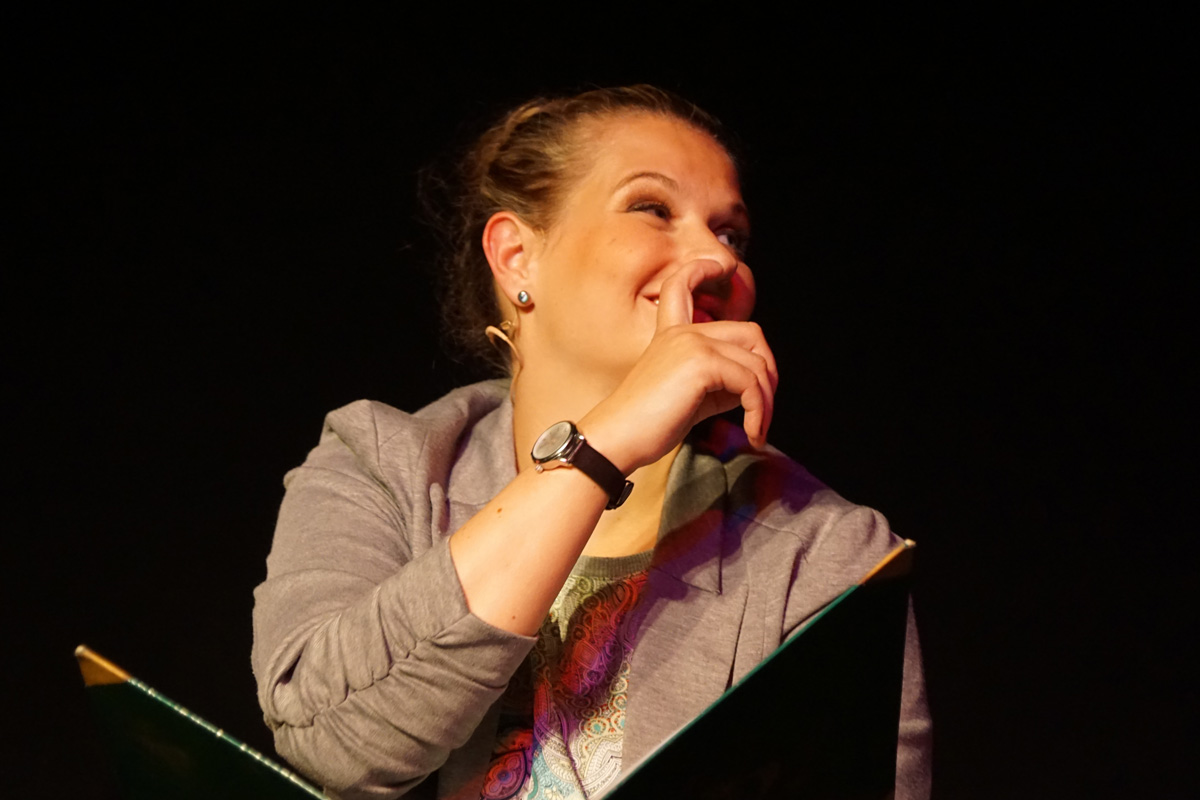 In der zweiten Hälfte gaben Eva Petzenhauser, Sebastian Hagengruber und Tom Bauer nochmals richtig Gas. Die Darstellung der neun verschiedenen Rollen wurde immer skurriler und lustiger. Besonderes Highlight war das „Lehrmadl“ der Firma „Täubchen und Täubchen Co.KG“, das bei den Gästen Begeisterungsstürme auslöste.