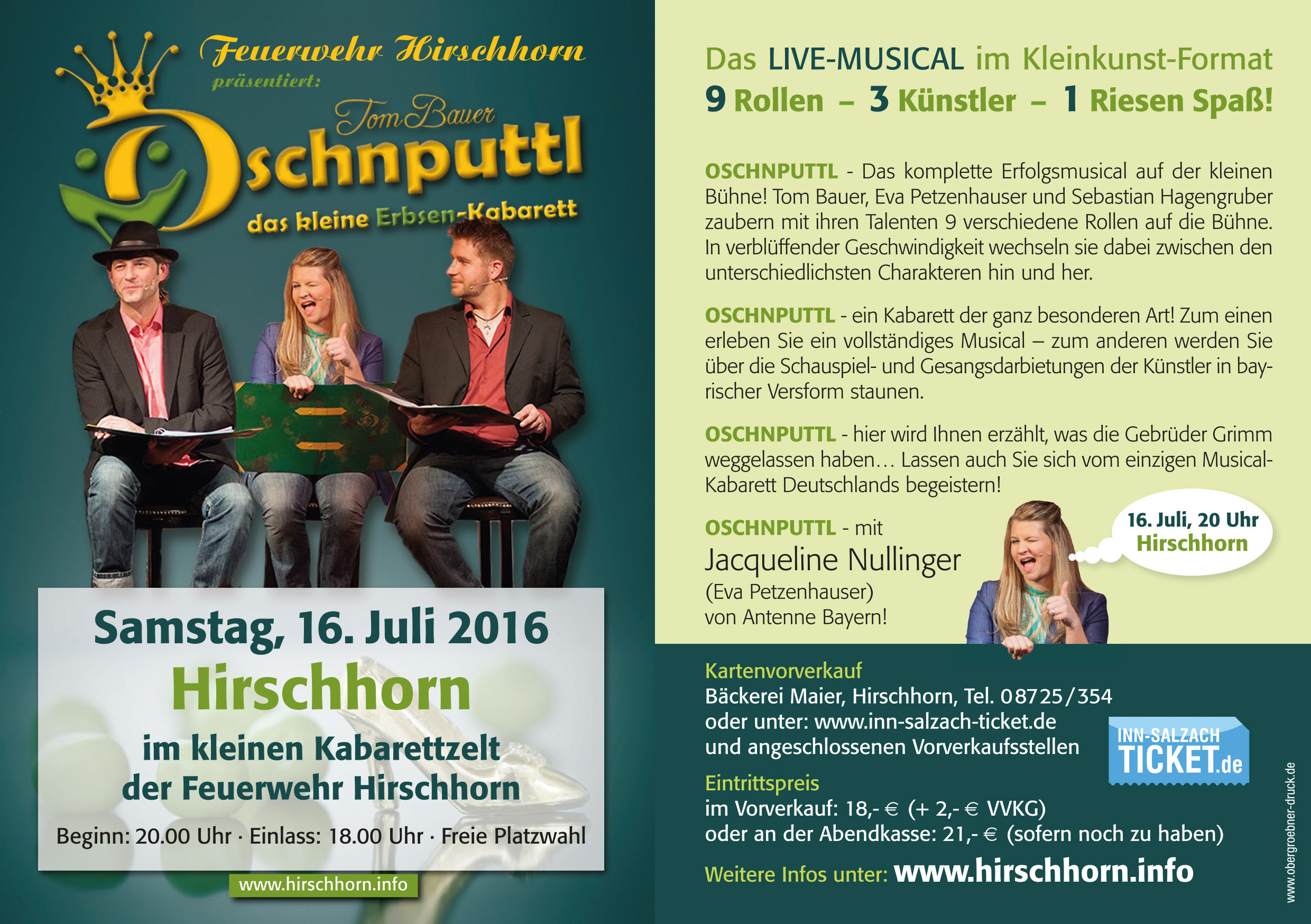Bereits vor 1 ½ Jahren entdeckten unsere Kabarettorganisatoren Manfred Nußbaumer und Christoph Zöllner die Gruppe Oschnputtl bei einem Auftritt in Bodenmais. Da die beiden vom Können der Gruppe vollkommen überzeugt waren, stimmte die Vorstandschaft dem Engagement blindlings zu. Und heute zeigte sich: