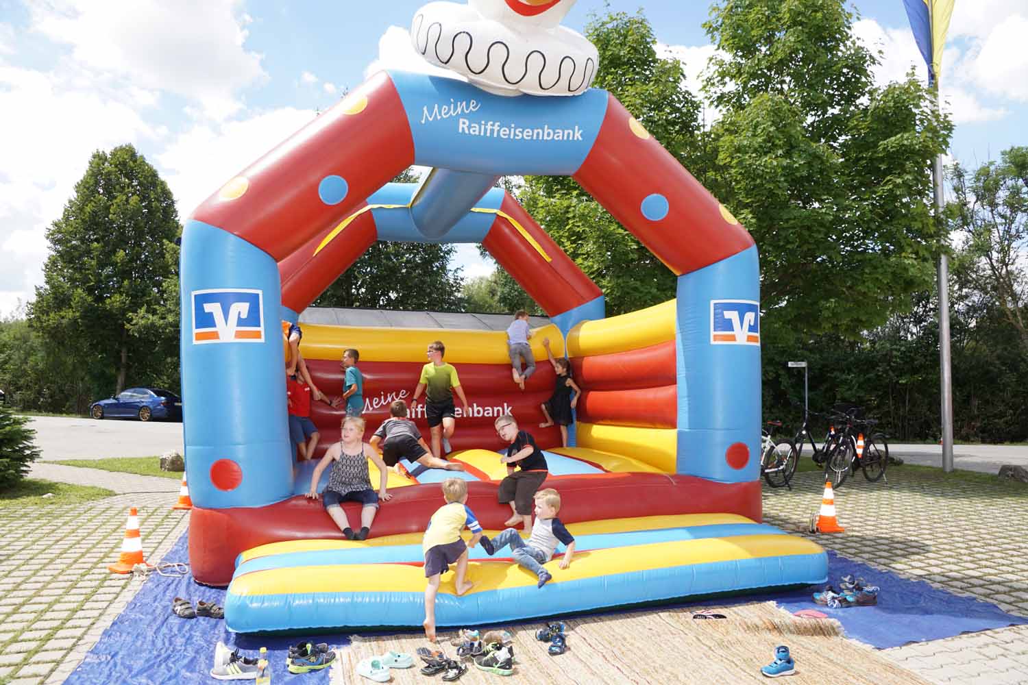Ein wichtiger Bestandteil des Spritzenfest-Familientags ist natürlich das Programm für die Kinder. Sowohl die ewig beliebten Rundfahrten mit dem Feuerwehrauto als auch die von der VR-Bank – meine Raiffeisenbank eG – Altötting kostenlos zur Verfügung gestellte Hüpfburg war ein Magnet für die Kleinen.