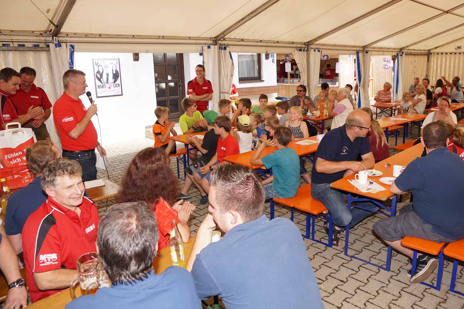 Optimales Wetter herrschte heuer beim Familien-Sonntag unseres Spritzenfestes. So konnte unser Vorstand Thomas Grötzinger viele bestens gelaunte Gäste aus Hirschhorn und Umgebung begrüßen. Unser Küchenteam zauberte wieder leckere Gerichte, die dieses Jahr zusätzlich noch um Steckerlfische ergänzt wurden. Auch der Andrang am Kuchenwagen war sehr groß, ist doch inzwischen allgemein bekannt, dass die Frauen von Hirschhorn und Umgebung die besten Kuchen weit und breit backen!