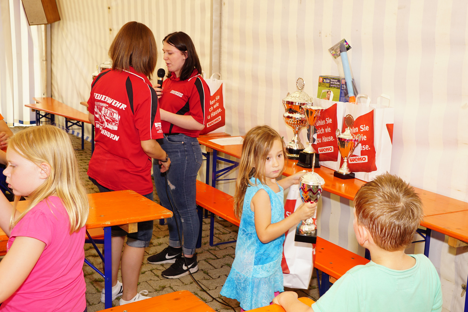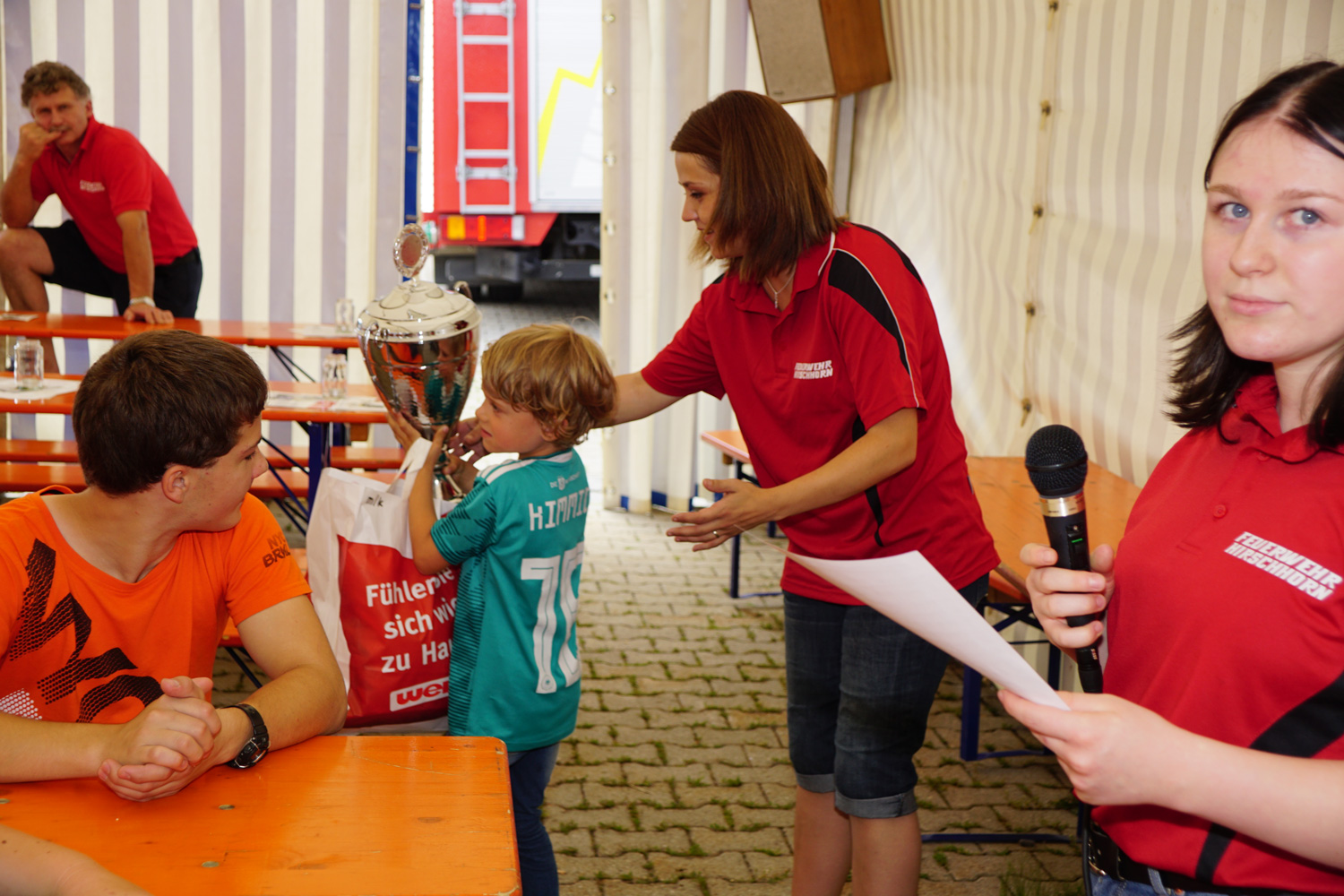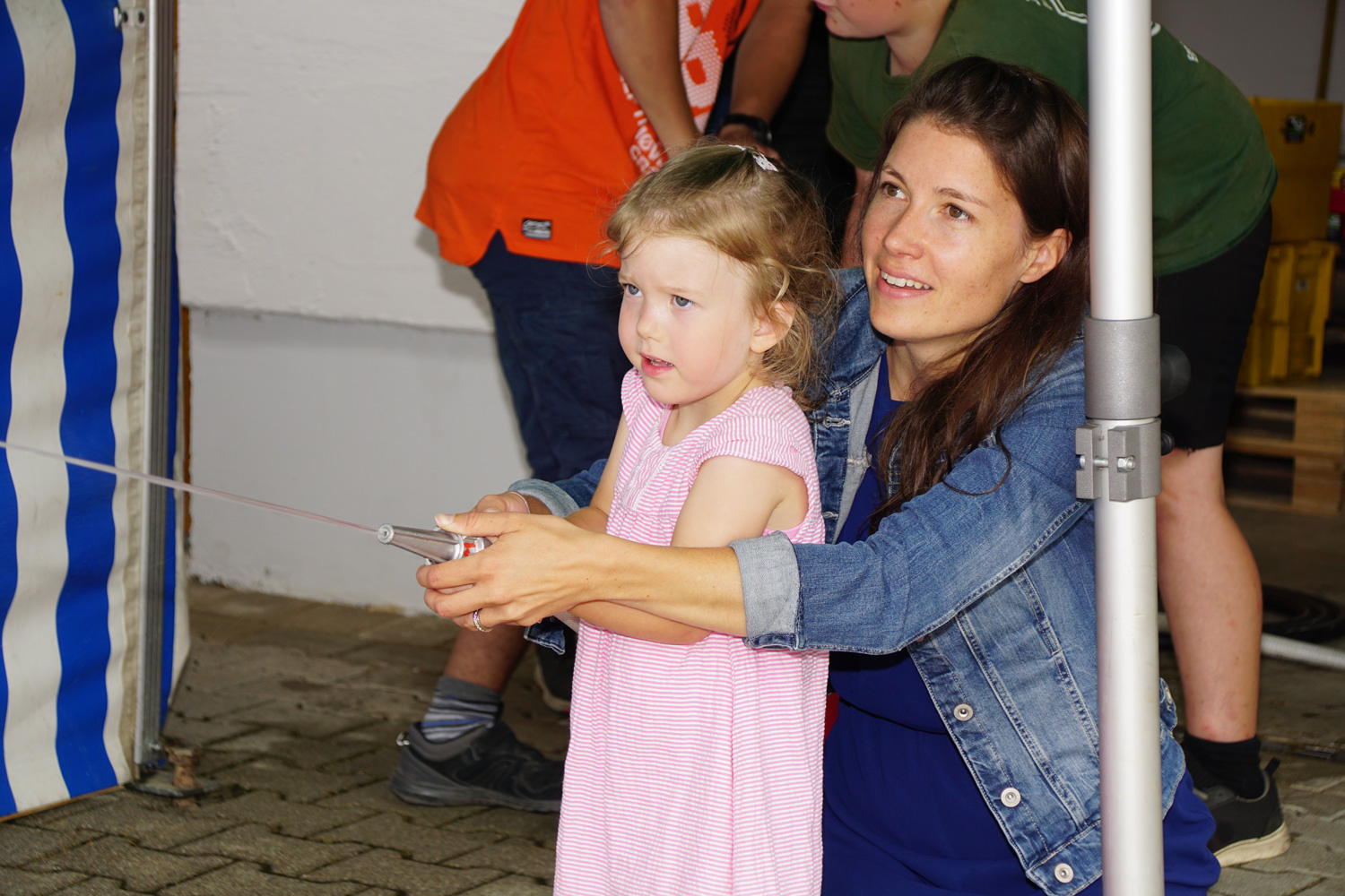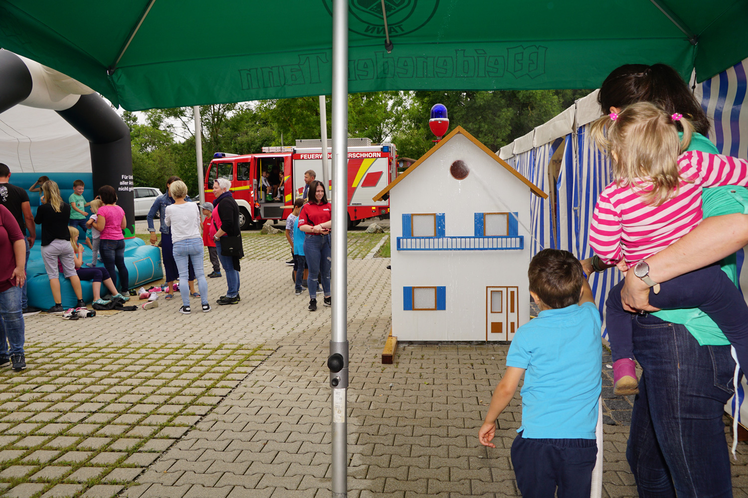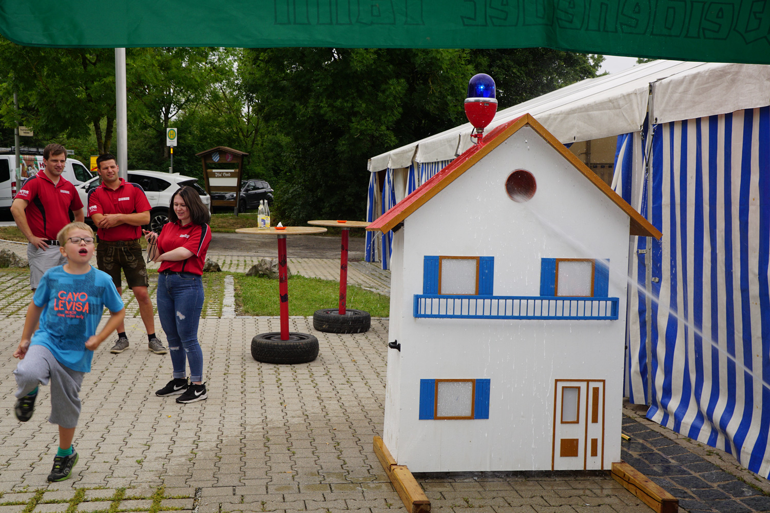 Das Highlight für die Kids war aber natürlich der Kinderspritzenwettbewerb. Hierbei durfte jedes Kind mit Wasser ein „brennendes“ Haus löschen.
